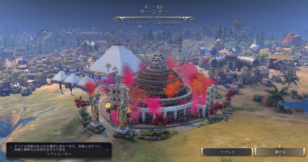 余談ですが、神AIのアウグストゥスが同じ都市にサーンチーと太陽のピラミッドを含む多数の遺産を建てていたことがあり、古代なのにターンあたりの文化力が4桁になったことがあるので記念に貼っておきます。おかしなことやっとる