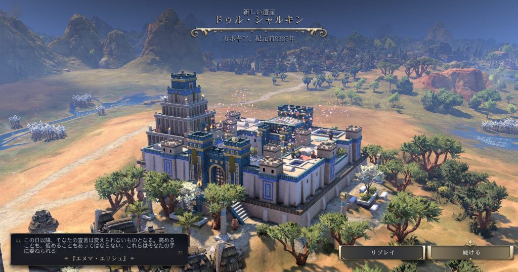 プレイヤーが万国の門を建てはじめる→AIが遺産を建てた効果音が鳴る→ああ、万国の門じゃなくてドゥル・シャルキンね…と安心するという流れはCiv7あるある。