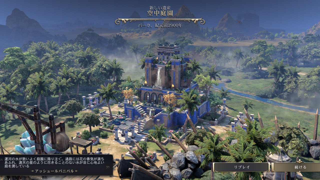 余談ですが、空中庭園って史実ではバビロンにあったはずなので、今後の大型DLCでバビロニア文明が登場した場合は空中庭園の生産ボーナスが掛かるのではないか?と予想しています。ハンムラビが来るか、それともネブカドネザルが来るか。